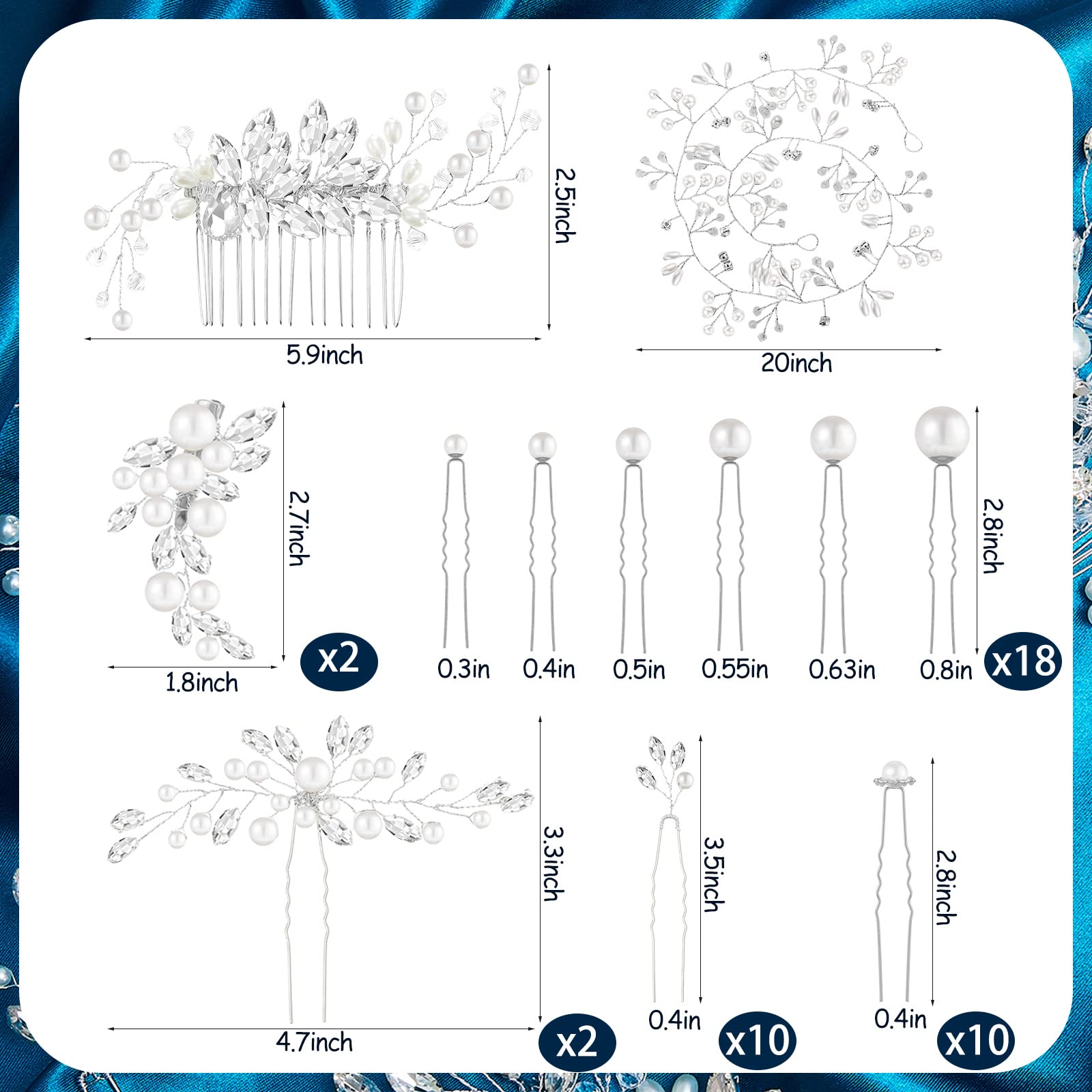- Package includes: you will receive 44 pieces of faux pearl crystal bride hair accessories in different sizes and dimensions, with a design and originality that is exquisite and beautiful; Different styles have subtle differences in the way you display your hair