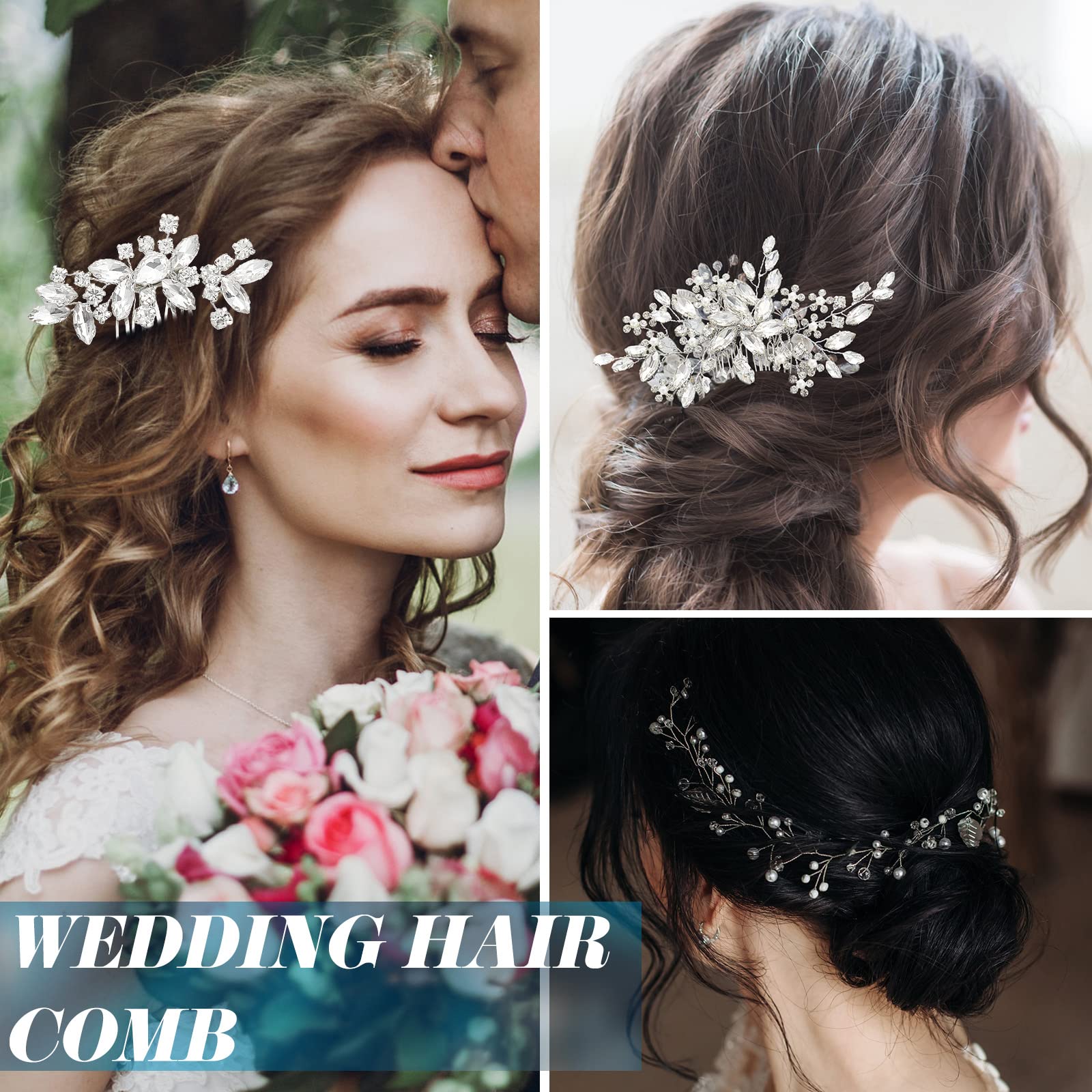 Maitys 44 Pieces Wedding Hair Accessories Faux Pearl Crystal Comb Clips U-shaped Flower Rhinestone Silver Pearl Hair Pieces for Prom Bride Bridesmaid(Delicate Style)